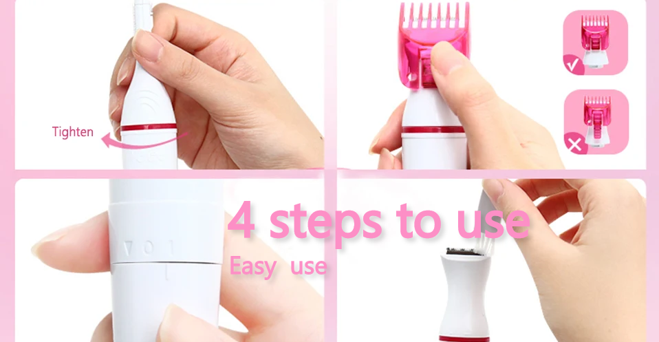Usage Guidelines: Comes with 5 functional heads (body, face, underarms, bikini, eyebrow/nose trimmer).Always attach the correct head before use. Use on clean, dry skin. Glide gently over skin without pressing too hard. Apply soothing lotion or gel after shaving.