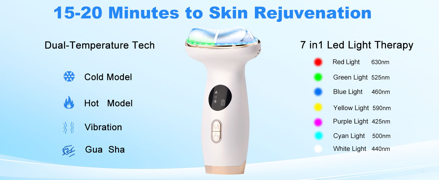 Typical Manufacturing FeaturesMulti-Functionality / 7-in-1 or similarCombines multiple skincare technologies in one device: hot therapy + cold therapy, LED (red, blue, sometimes green) light, EMS (electrical muscle stimulation), vibration, ion import/export Different modes for different skin needs (firming, lifting, anti-wrinkle, pore tightening) allowing versatile use