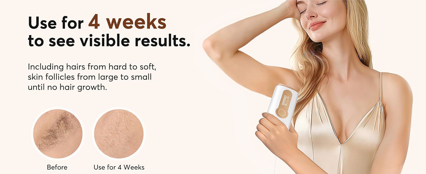 Skin Warnings: Do not use on broken, inflamed, or sunburned skin. Avoid tattoos, dark moles, or recent scars. Not effective for very dark skin tones or very light hair (white, gray, very blonde).