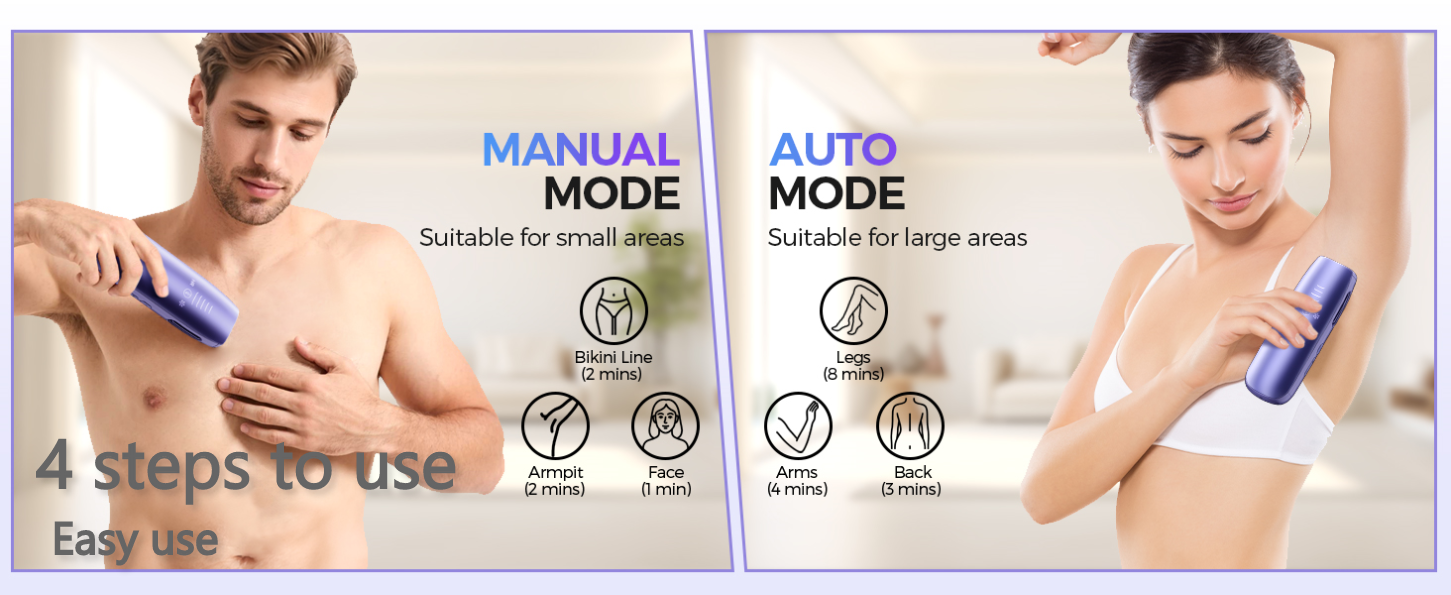 Usage Guidelines: Shave the treatment area 24 hours before use. Ensure skin is clean and dry before applying. Select the energy level according to your skin tone and thickness. Session time: only a few minutes depending on the area size. Recommended: once every 2 weeks during initial months, then as needed. Sapphire Freezing Point cooling technology minimizes discomfort and protects the skin.